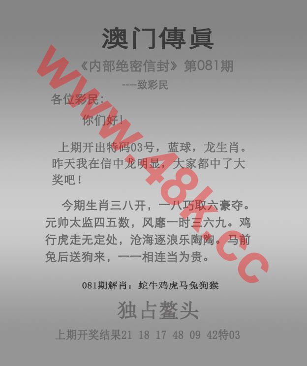 | ③码中特 | 24 38 41 | 开:蛇 02 |